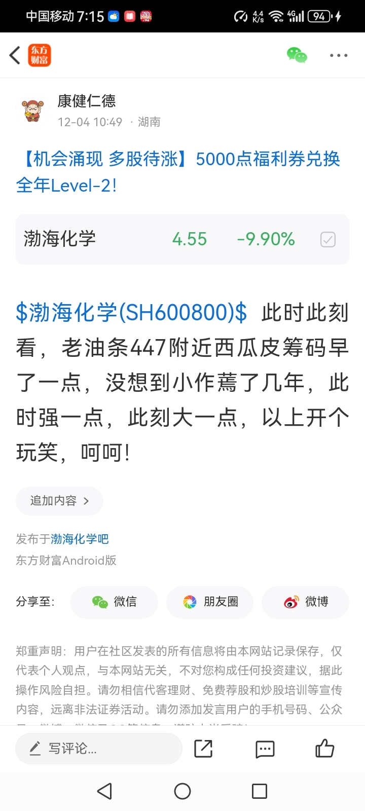温馨提示: 1.根据《证券法》规定,禁止编造、传播虚假信息或者误导性信息,扰乱证券市场;2.用户在本社区发表的所有资料、言论等仅代表个人观点,与本网站立场无关,不对您构成任何投资建议。用户应基于自己的独立判断,自行决定证券投资并承担相应风险。《东方财富社区管理规定》