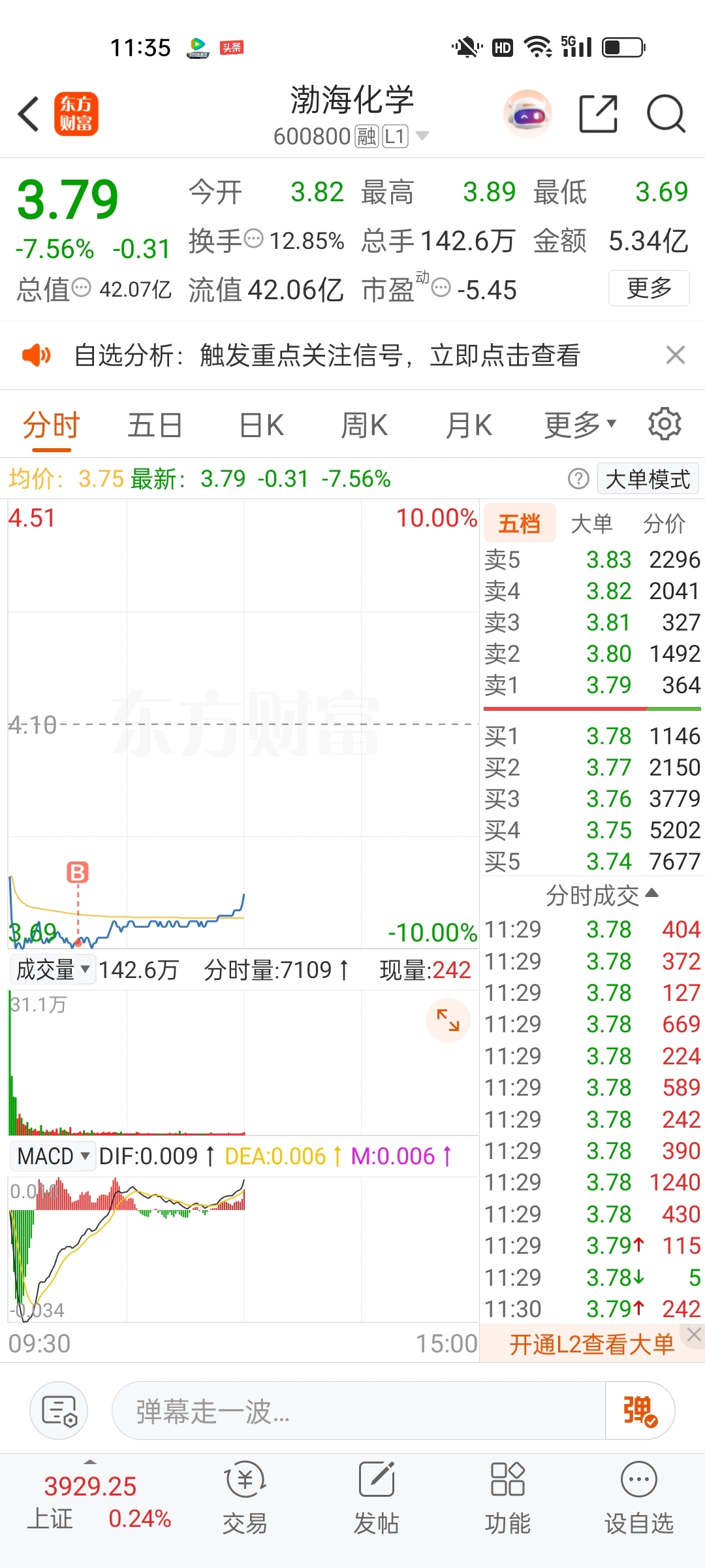 $渤海化学(SH600800)$ 给我地天