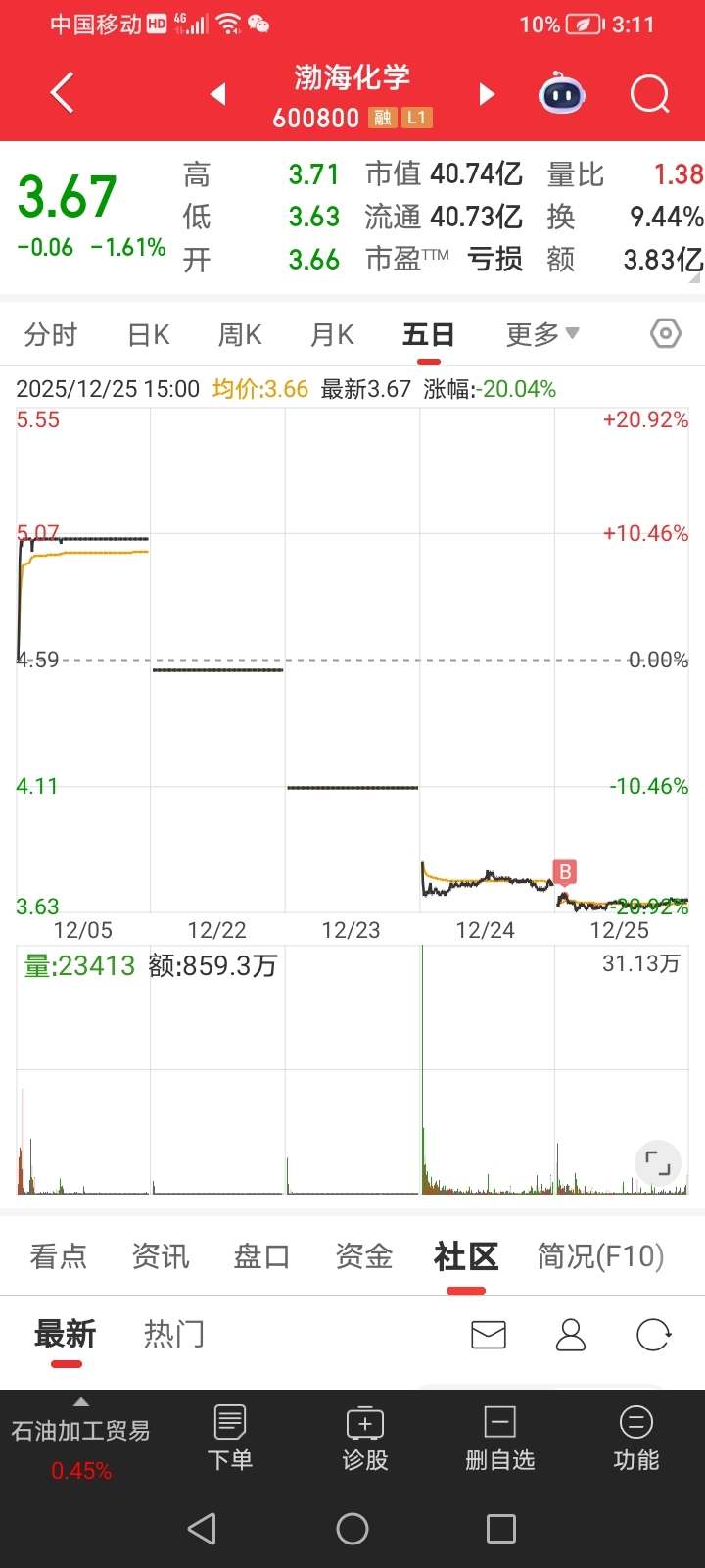 $渤海化学(SH600800)$ 进来就亏钱,不好玩