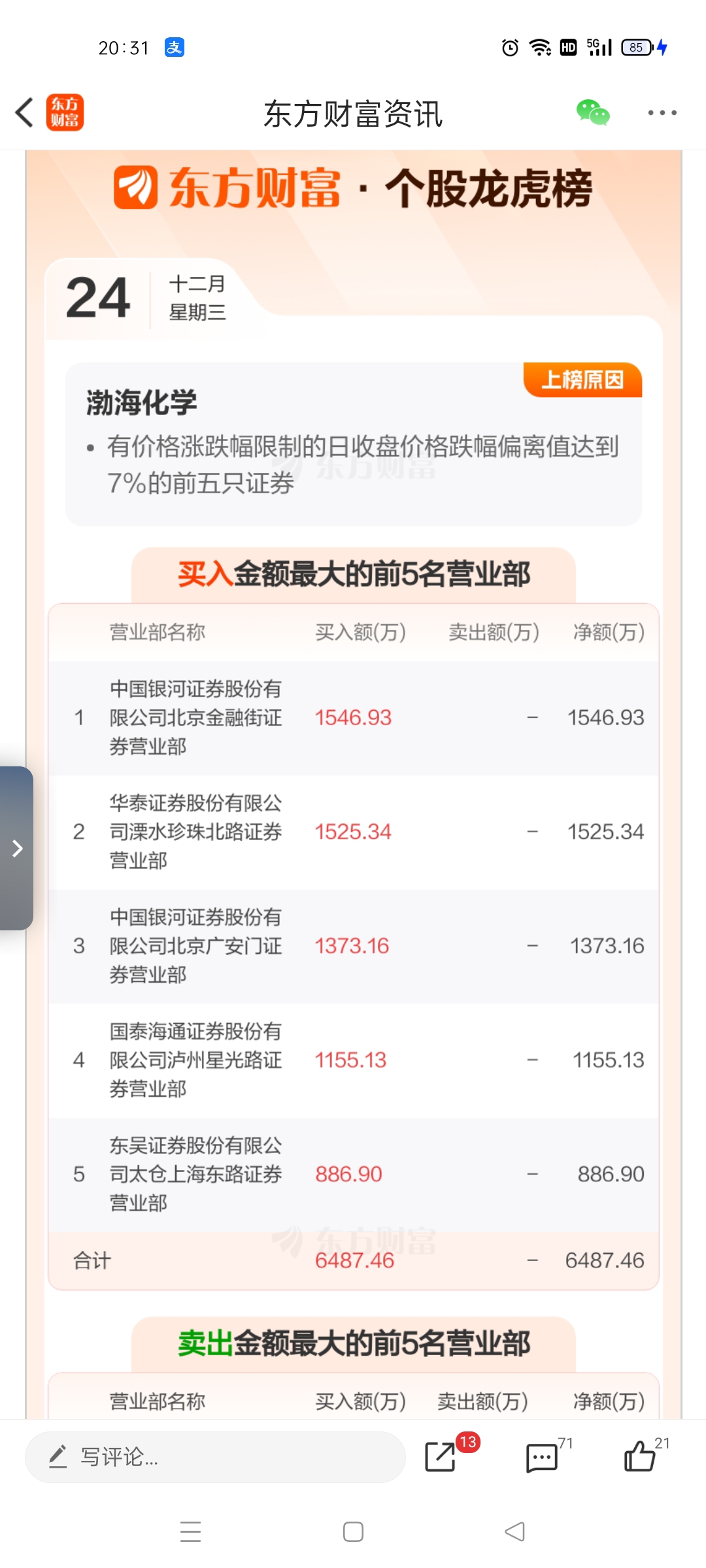 $渤海化学(SH600800)$ 龙虎榜的这些,难道都已经走了么