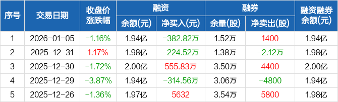 渤海化学:融资净偿还382.82万元,融资余额1.94亿元(01-05)