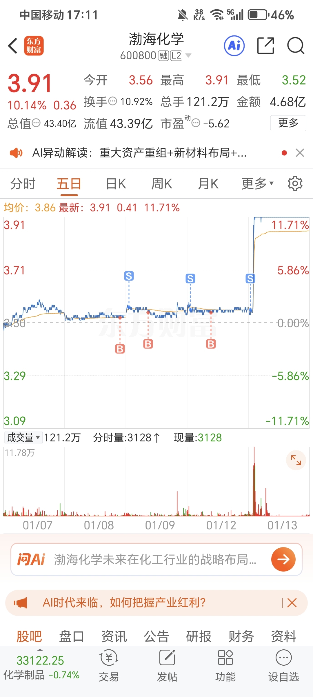 $渤海化学(SH600800)$ 与你无缘,删除自选