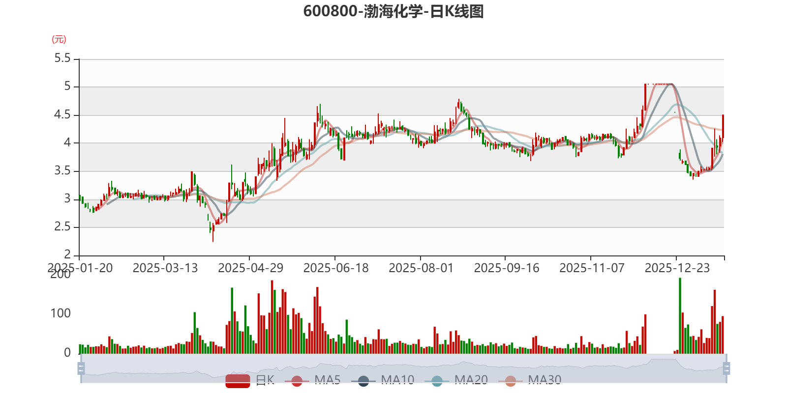 渤海化学:预计2025年亏损6.32亿元-6.65亿元