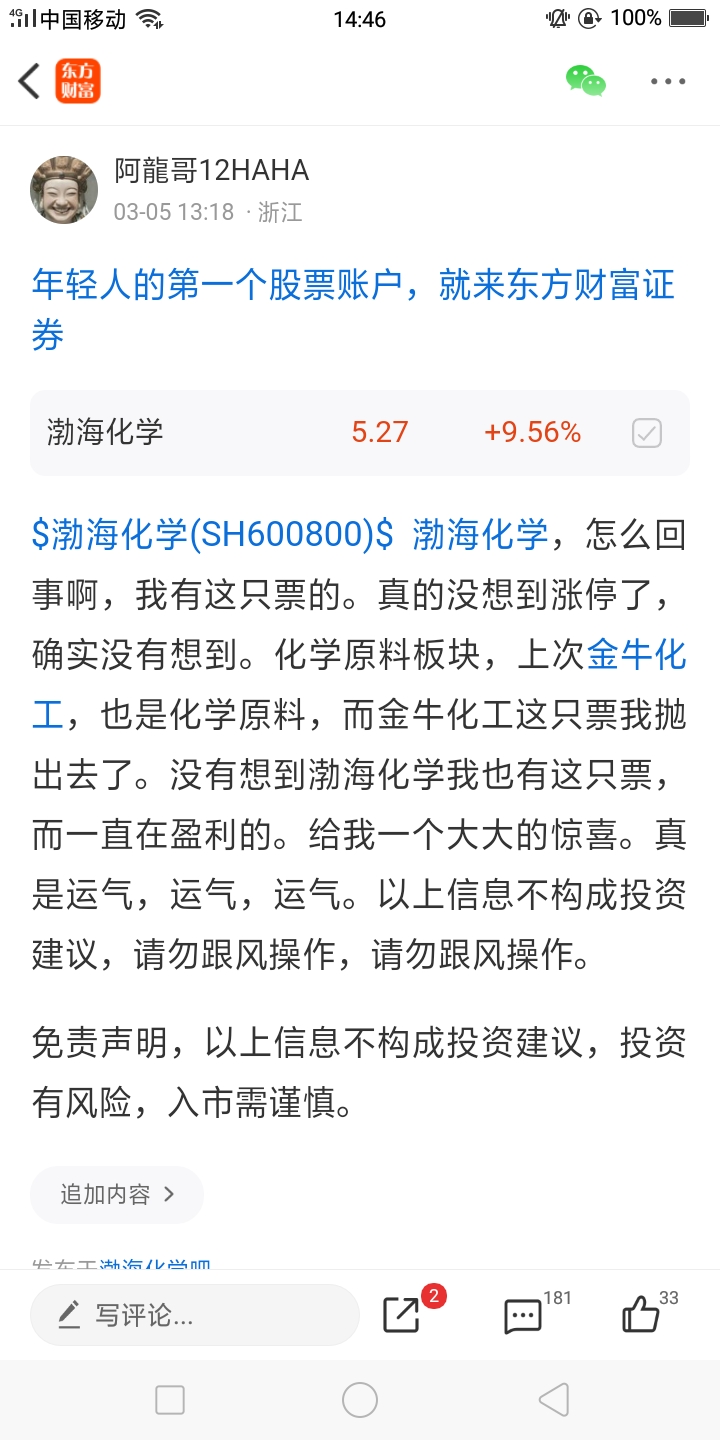 $渤海化学(SH600800)$ 渤海化学,这一票刚才又给我弄涨停了,现在封板打开了一下。又涨停了,又涨停,又涨停啦。哈哈哈哈哈哈哈哈。加油加油,加油加油!以上信息不构成投资建议,请勿跟风操作,请勿跟风操作。