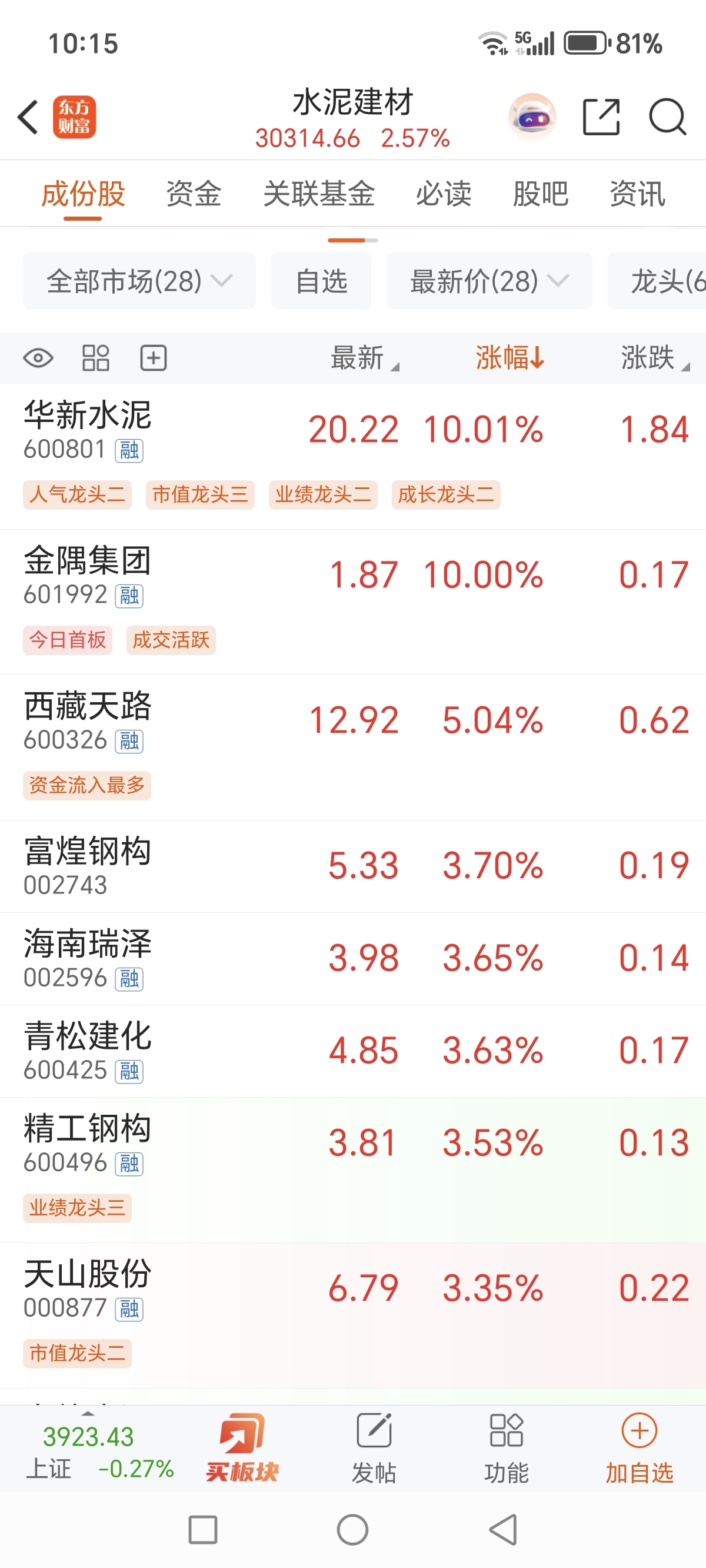 $华新水泥(SH600801)$ $金隅集团(SH601992)$ $龙泉股份(SZ002671)$ 水泥建材板块多股涨停,为什么我手中没有这些股票?