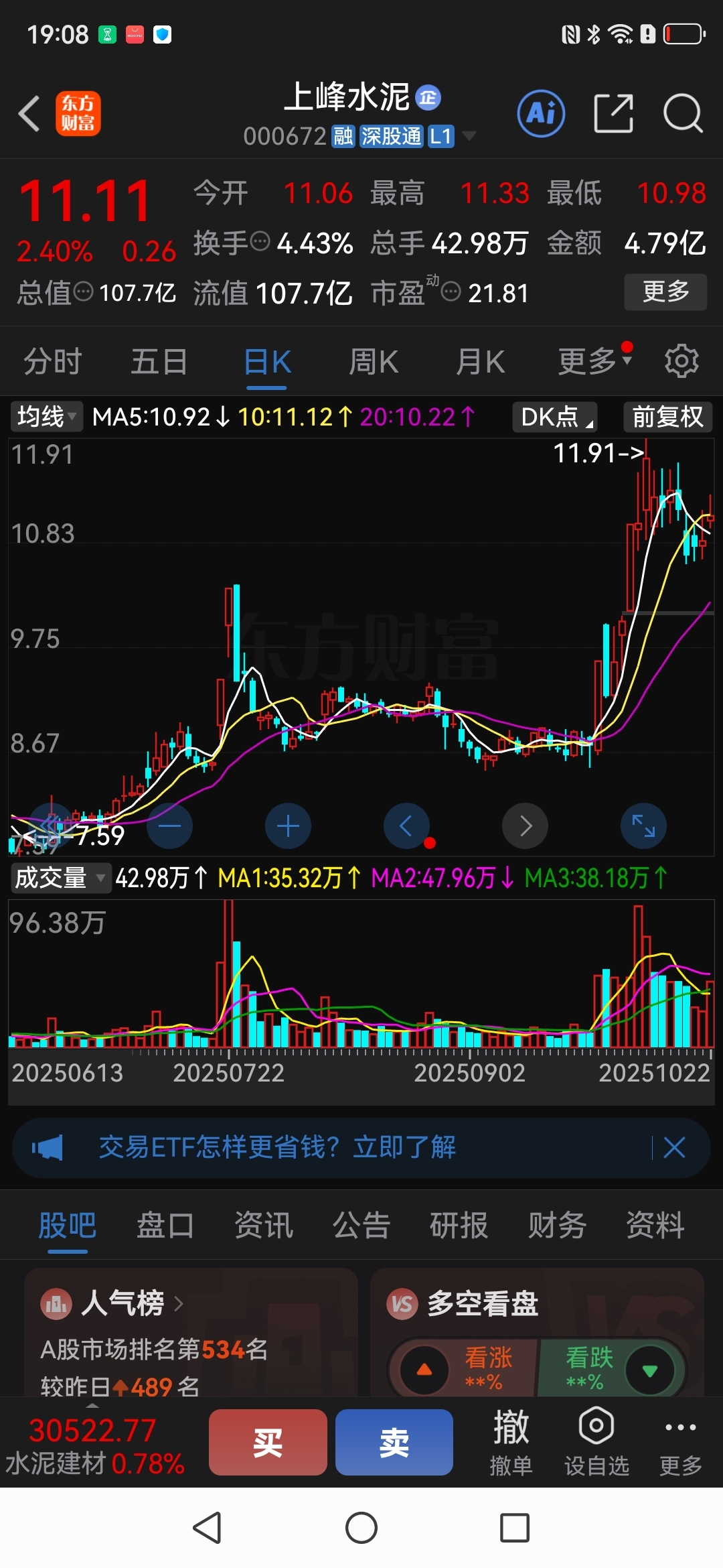$华新水泥(SH600801)$ $上峰水泥(SZ000672)$ 还是华新水泥稳庄家实力强!上峰这周剩2个交易日,多方稳住11元以上,下周公布三季报会有惊喜(前段公布投资赚了1.6亿)!现获利盘、打压盘、洗盘等抛压己接近尾声,未来上峰投资10多家科技公司如陆续上市,与公司改名,会有一波波澜壮阔行情,个人观点不推荐股票。