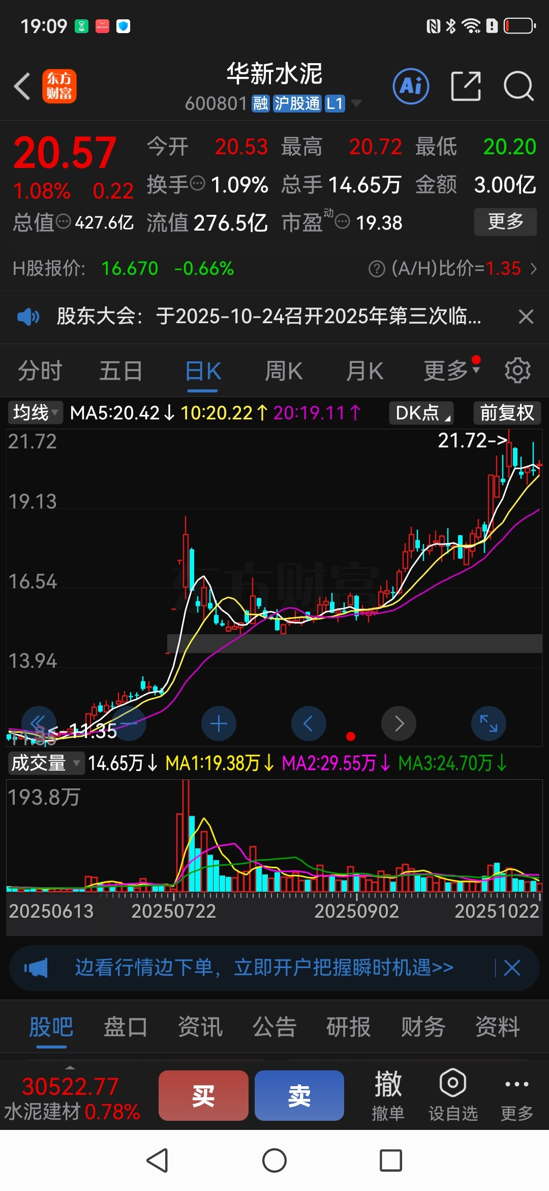 还是华新水泥稳庄家实力强!上峰这周剩2个交易日,多方稳住11元以上,下周公布三季