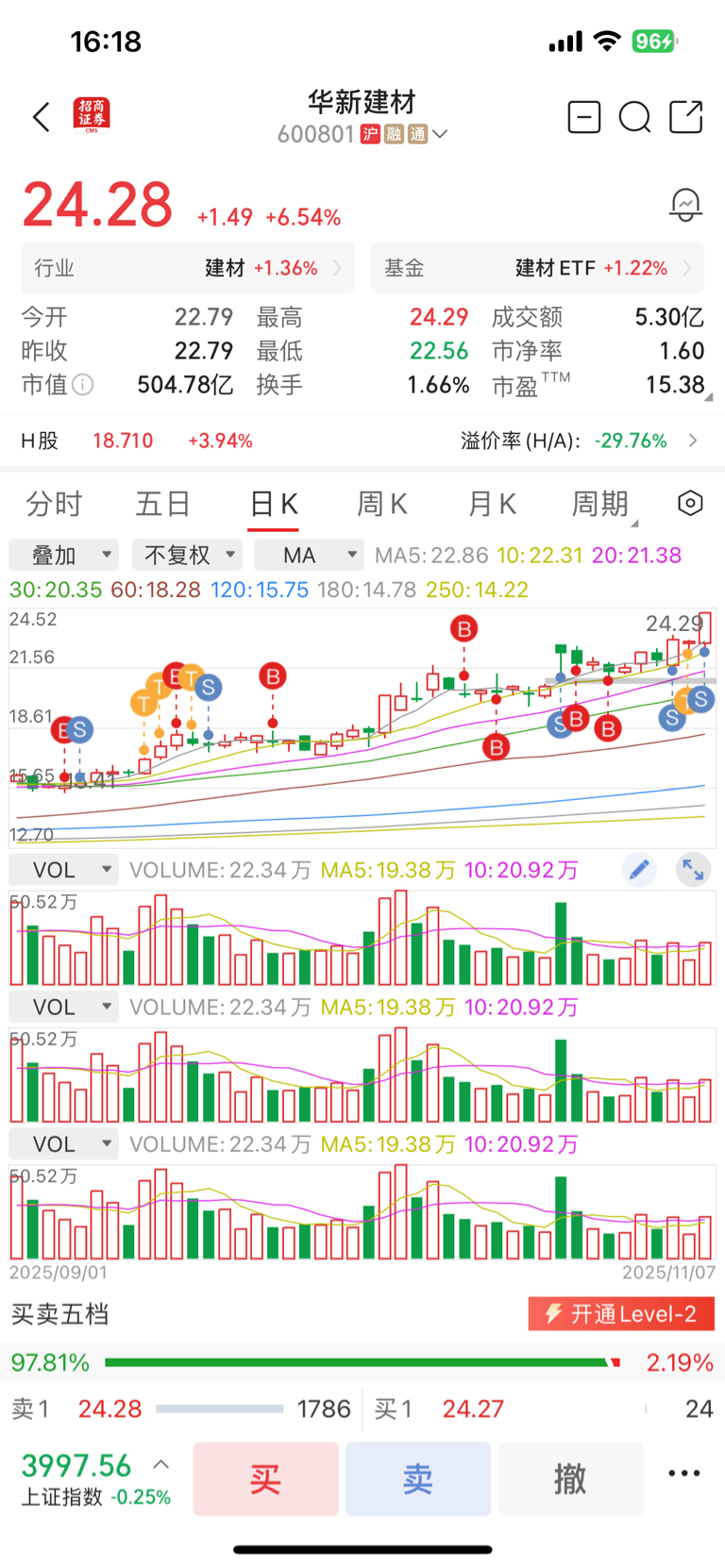 $华新建材(SH600801)$ 偷偷吃肉