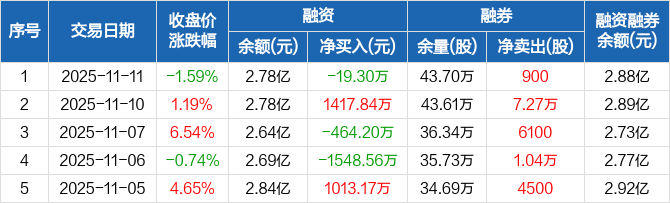 华新建材:融资净偿还19.3万元,融资余额2.78亿元(11-11)