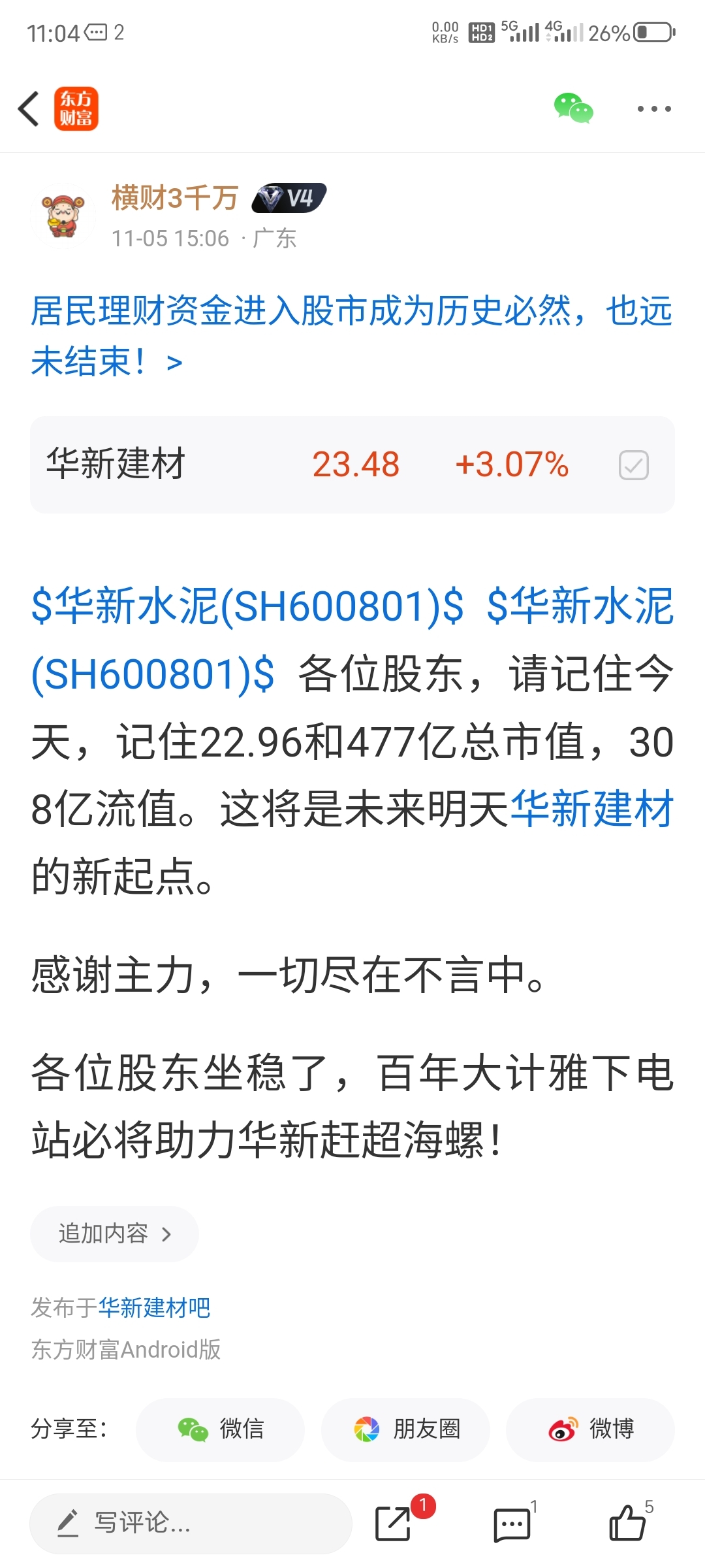 $华新建材(SH600801)$ 加油加油