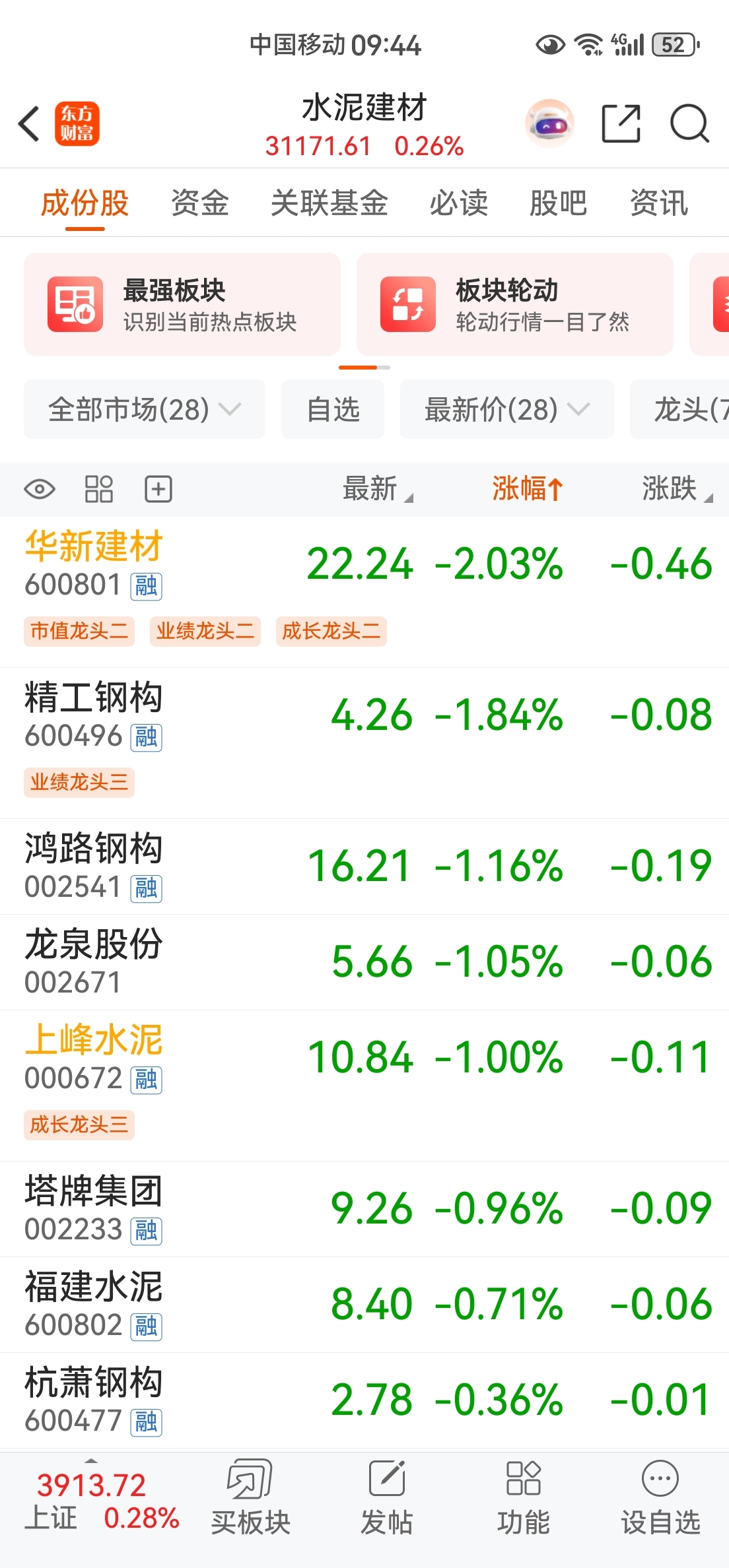 $华新建材(SH600801)$ 活久见 又跌幅第一