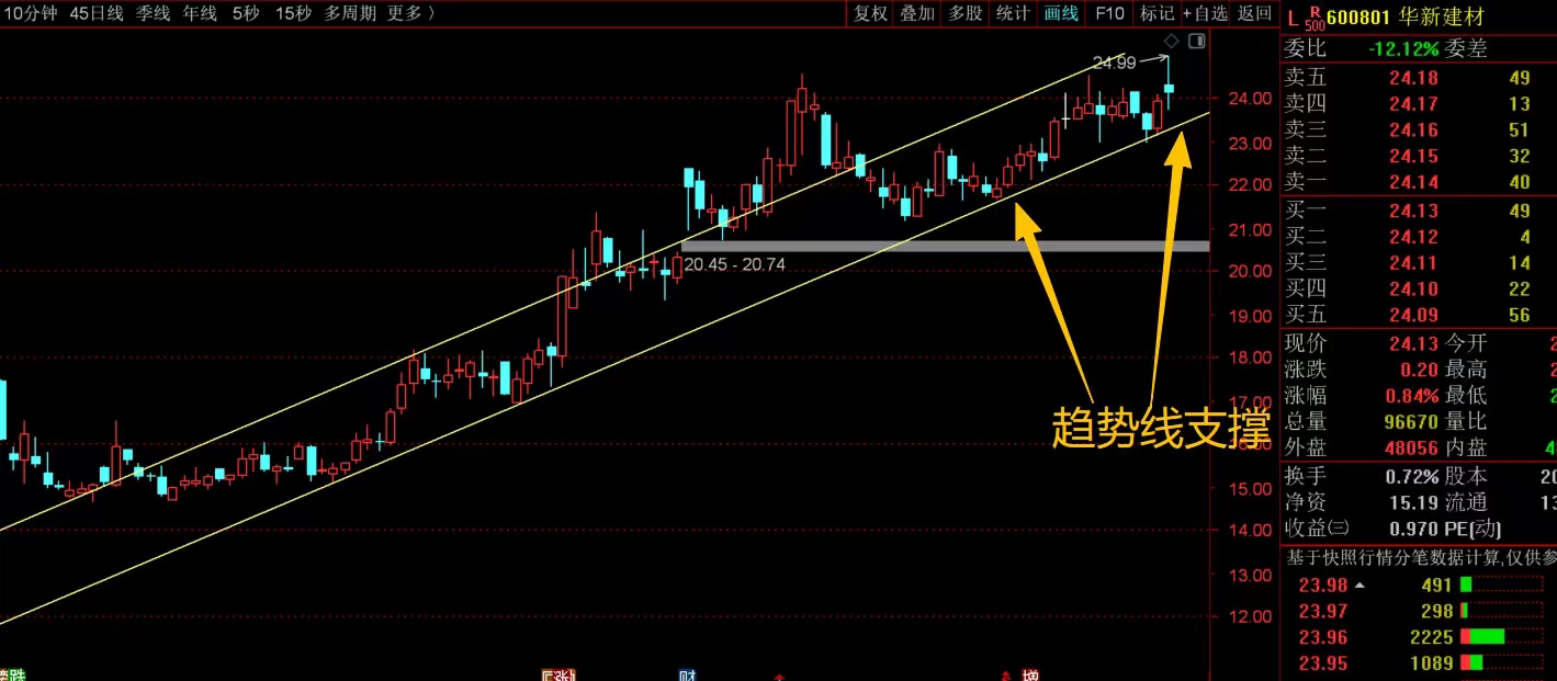 $华新建材(SH600801)$ 中期走势很稳健,几乎没有明显的回落走势,一直沿着一个窄幅的上升通道运行,接下来继续盯着通道,能继续沿着通道震荡上行就没问题,继续持仓拿捏即可,但如果回落调整跌破通道的话,就要注意短线的回落调整风险,成本低的可以不乱动,多看看再说,但成本高的就先控制仓位应对,防着回落风险。#复盘记录# #炒股日记#