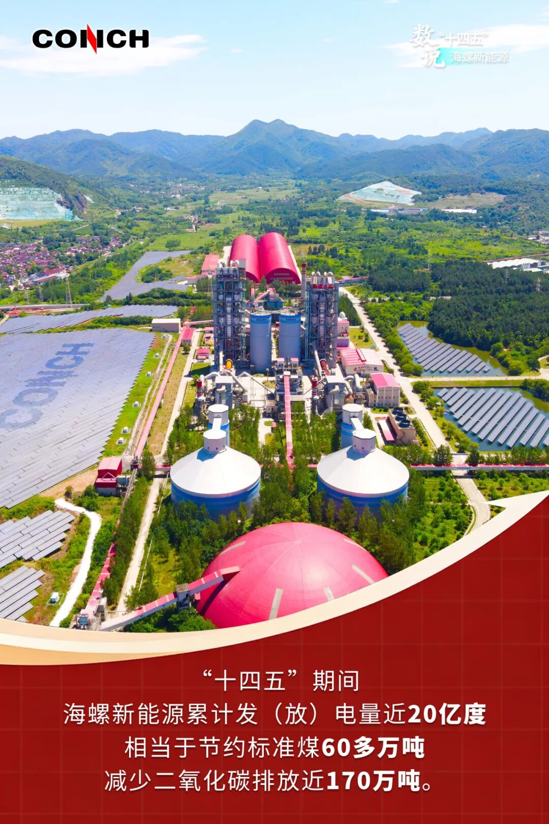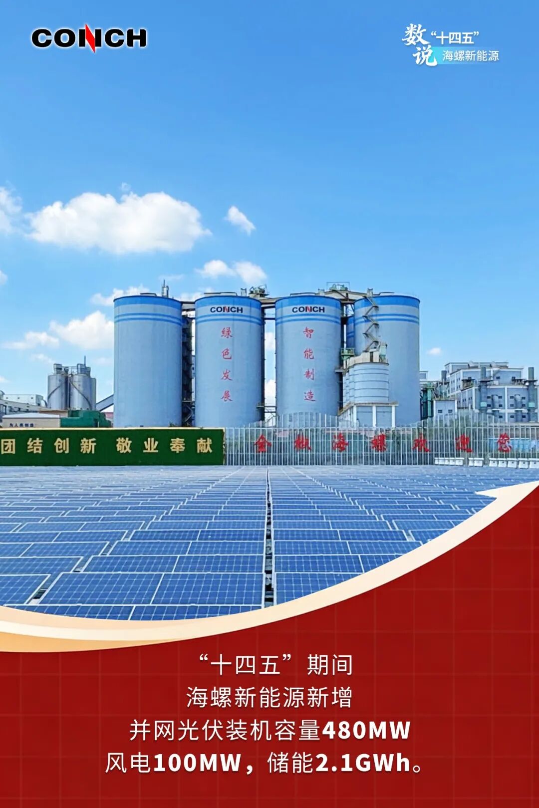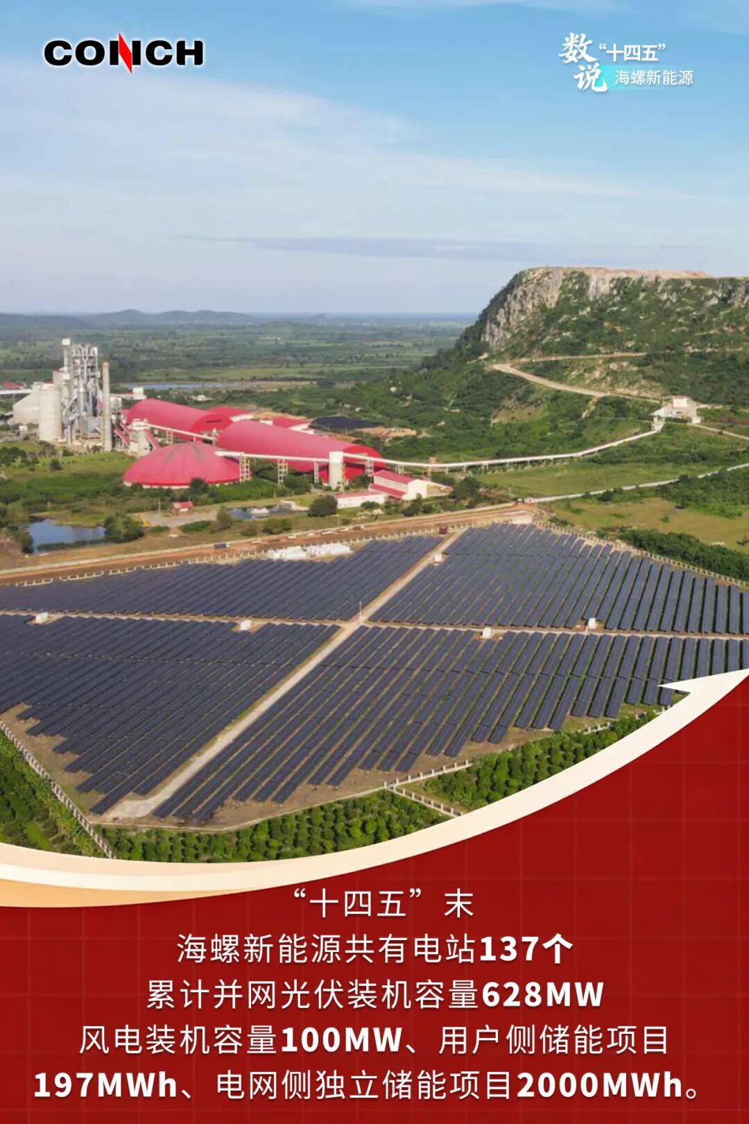 安徽海螺新能源有限公司是海螺水泥全资子公司,成立于2018年。作为海螺集团“一基五业”的重要组成部分,该公司牢牢把握“零碳园区方案提供商+清洁能源供应商”的定位,在“十四五”时期加快发展步伐和技术研究,在新能源装机规模、品牌影响力、产业链延伸等方面均实现了突破。今天我们通过一组海报,“数说”海螺新能源。