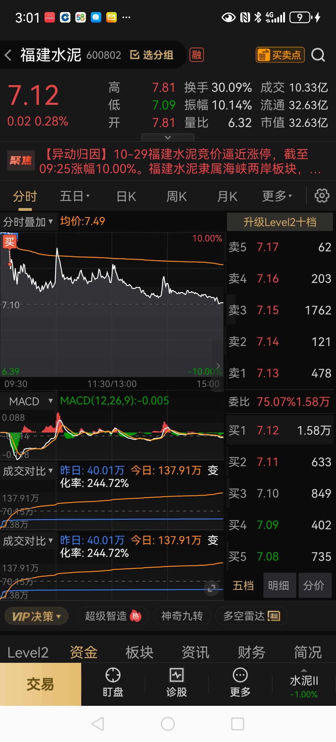 $福建水泥(SH600802)$ 早上卖了 想做个T 结果T亏了