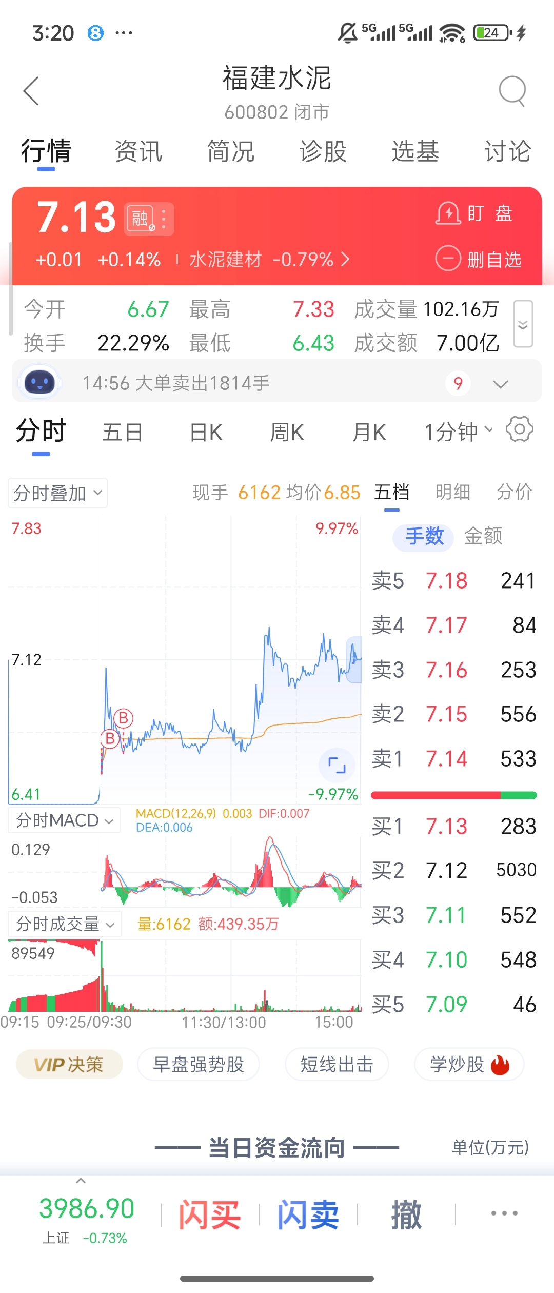 $福建水泥(SH600802)$ 明天上涨五个点就可以跑了,不管怎么说,明天肯定会拉高,不要贪心