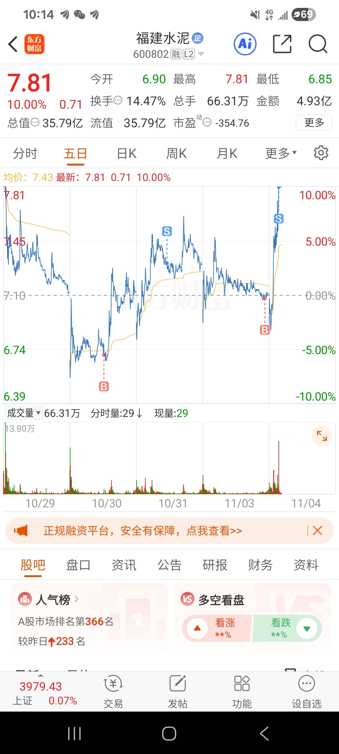 $福建水泥(SH600802)$ 明天不会拍大腿吧?