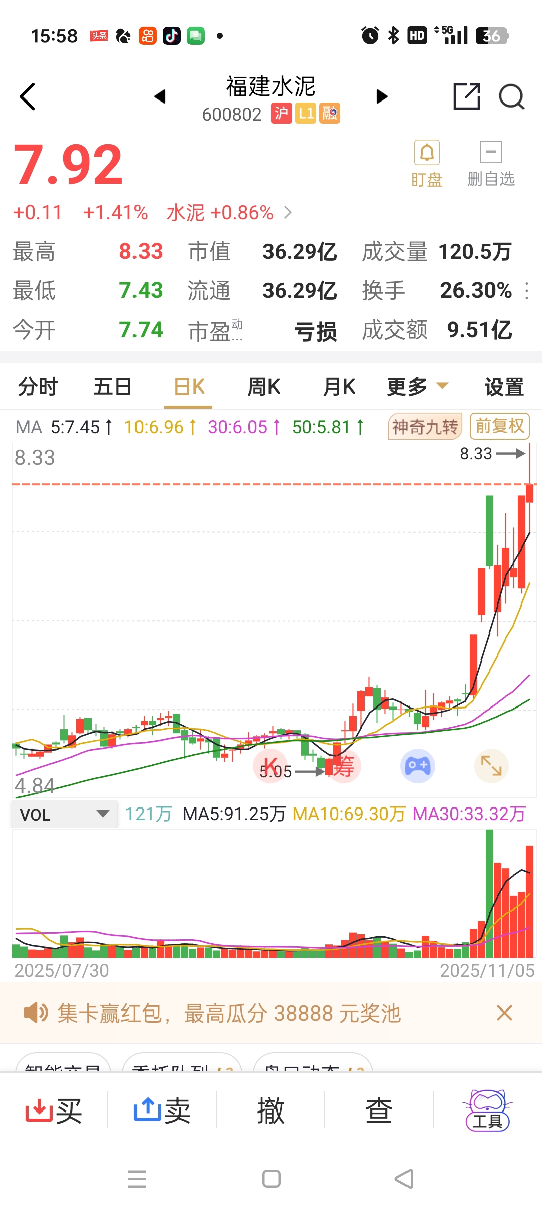 $福建水泥(SH600802)$ 大家看最下面一排,麻将长期不动,这几天码起来了,庄家开工了
