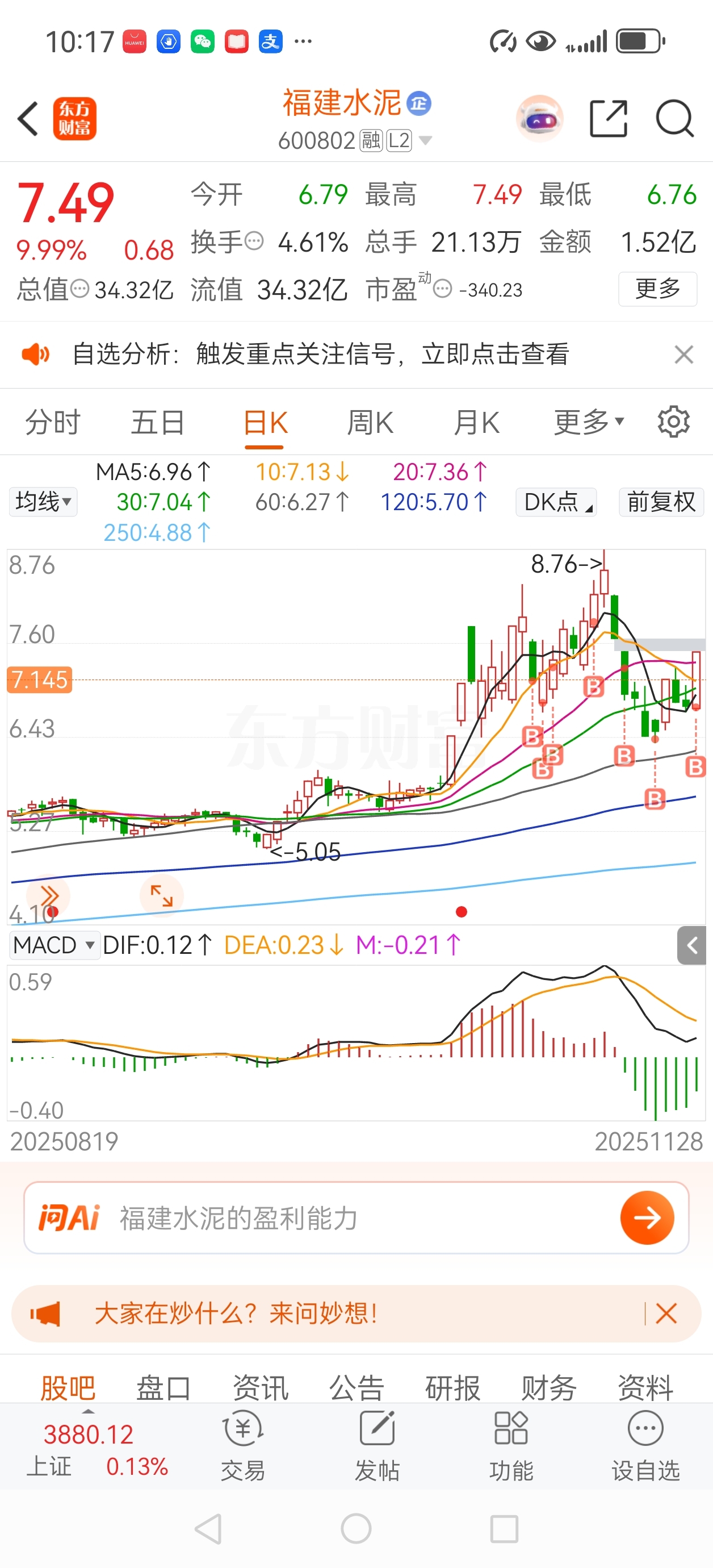 $福建水泥(SH600802)$ 感谢主力,给我继续做多的机会