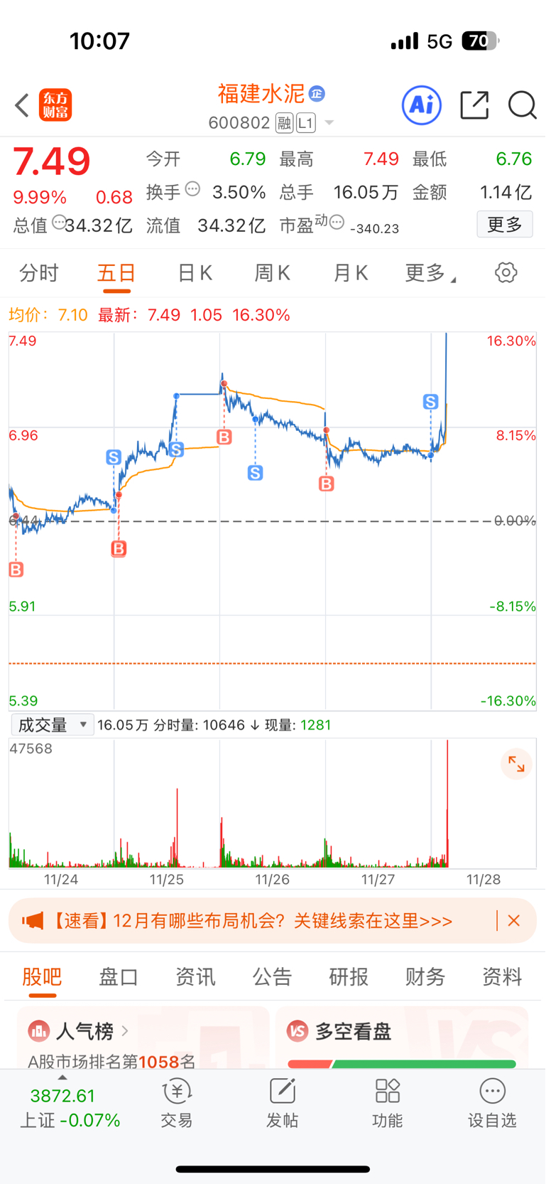 $福建水泥(SH600802)$ 鲁莽了,想等水下接回来,结果全仓卖飞了,后悔啊