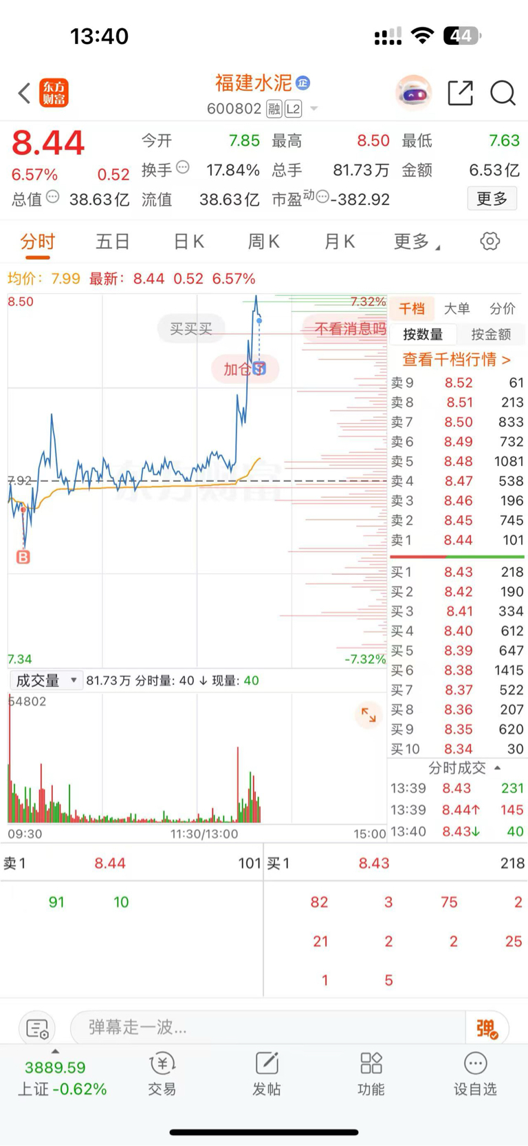 $福建水泥(SH600802)$ 主力,就剩1000股了,你随意,涨了就涨,跌下来我加仓