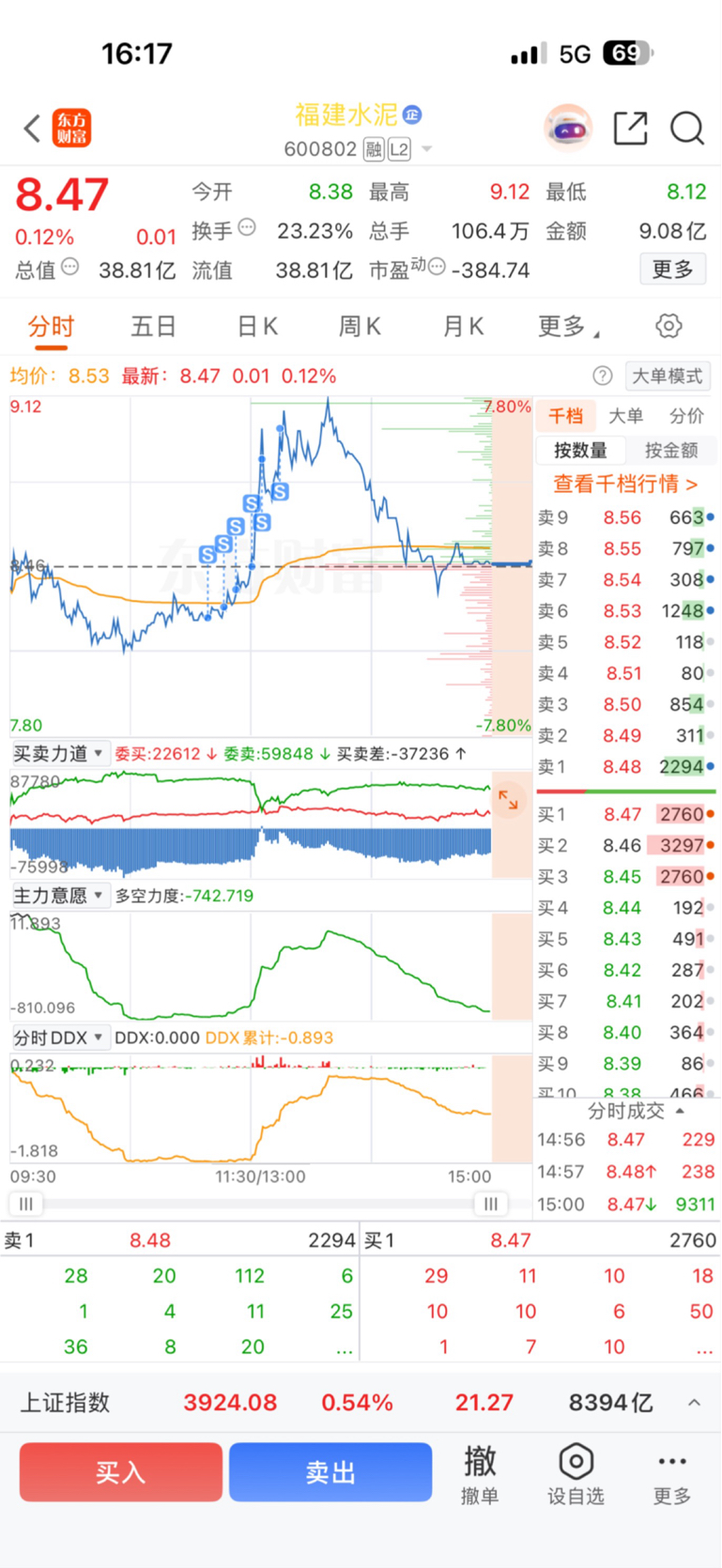 $福建水泥(SH600802)$ 差点追高上当,拉黑几天
