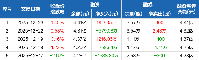 福建水泥:融资净买入963.05万元,融资余额4.41亿元(12-23)