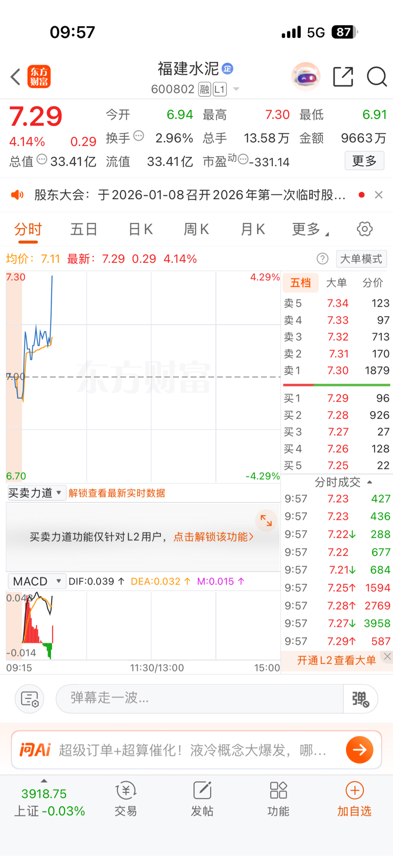 $福建水泥(SH600802)$ 早上刚跟朋友炫耀下 就掉了