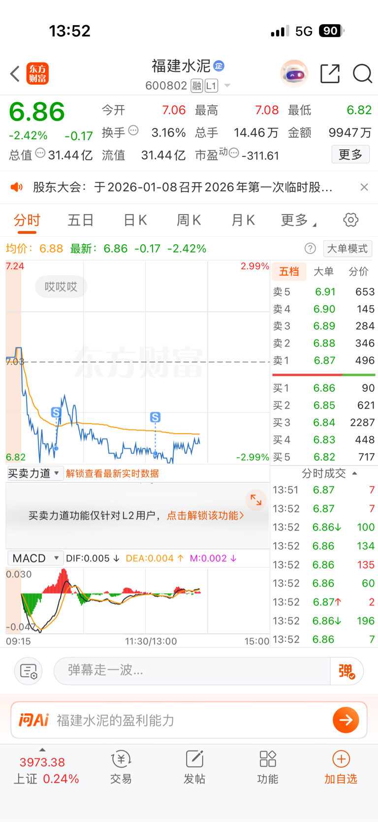 $福建水泥(SH600802)$ 要感谢我 一卖就涨