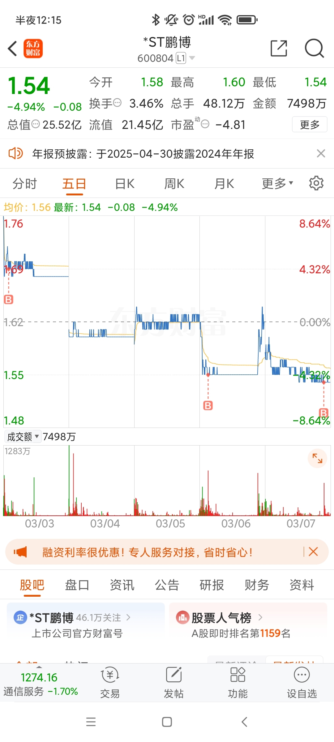 $*ST鹏博(SH600804)$ 恭喜上车的朋友,周一开始收获5个点,本人3000个已通过200个号每个15个已买入,均价1.59,周一开始收米,预计一周目标价1.75,卖出价格设置1.8卖出1000个,2.0卖出1000个,2.2卖出最后1000个,获利0.261000+0.41000+0.51000=260+400+500=1160个