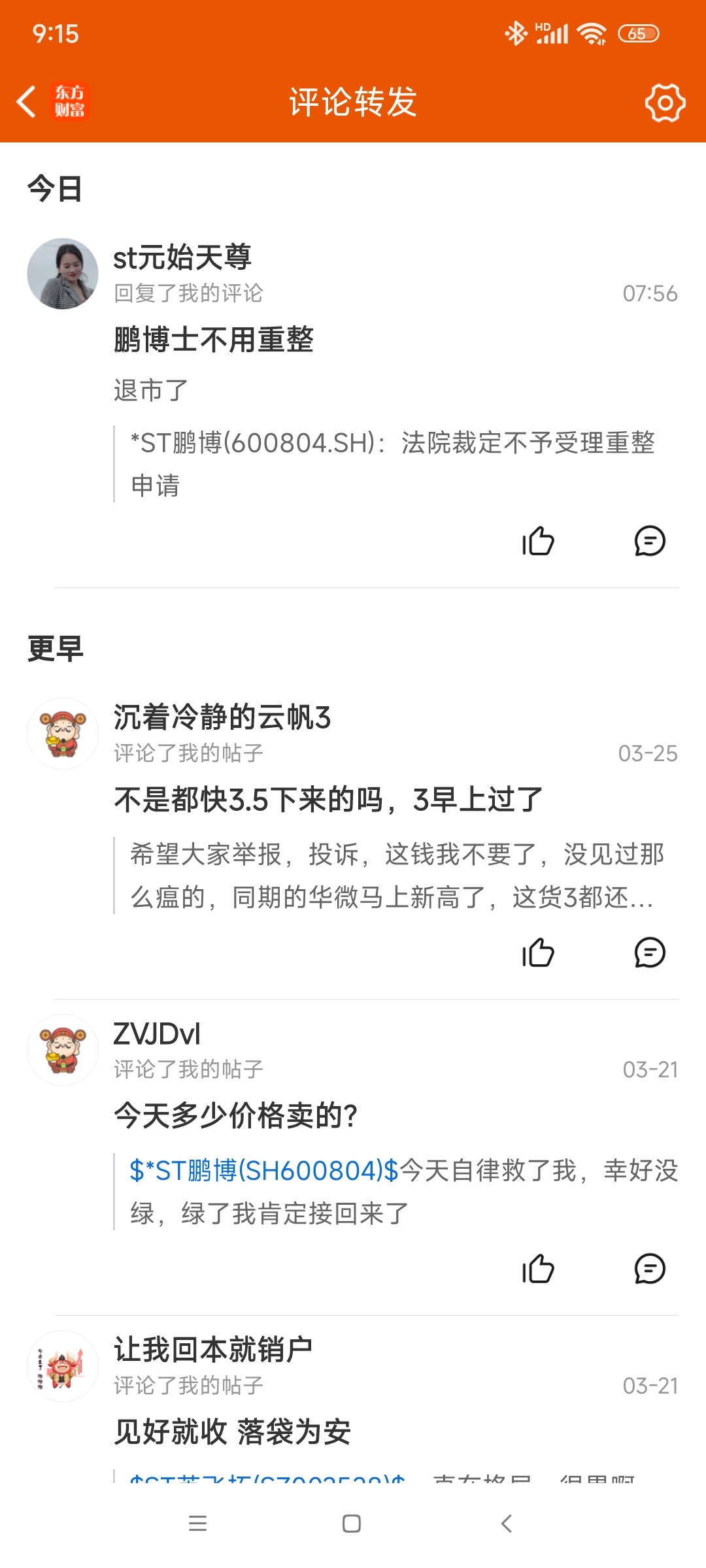$*ST鹏博(SH600804)$ 还在幻想,说实话,炒股很累,这几天我买的都是不带星的st,还有年度盈利,减亏的,st越来越多,只有加强退市力度
