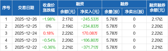 悦达投资:融资净偿还245.53万元,融资余额2.17亿元(12-26)