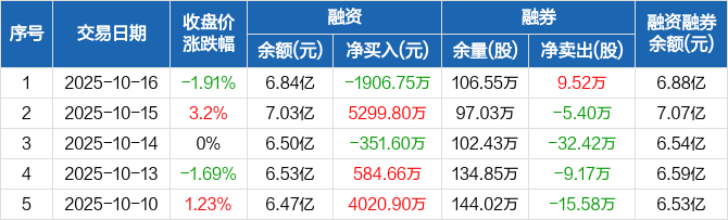 马钢股份:融资净偿还1906.75万元,融资余额6.84亿元(10-16)