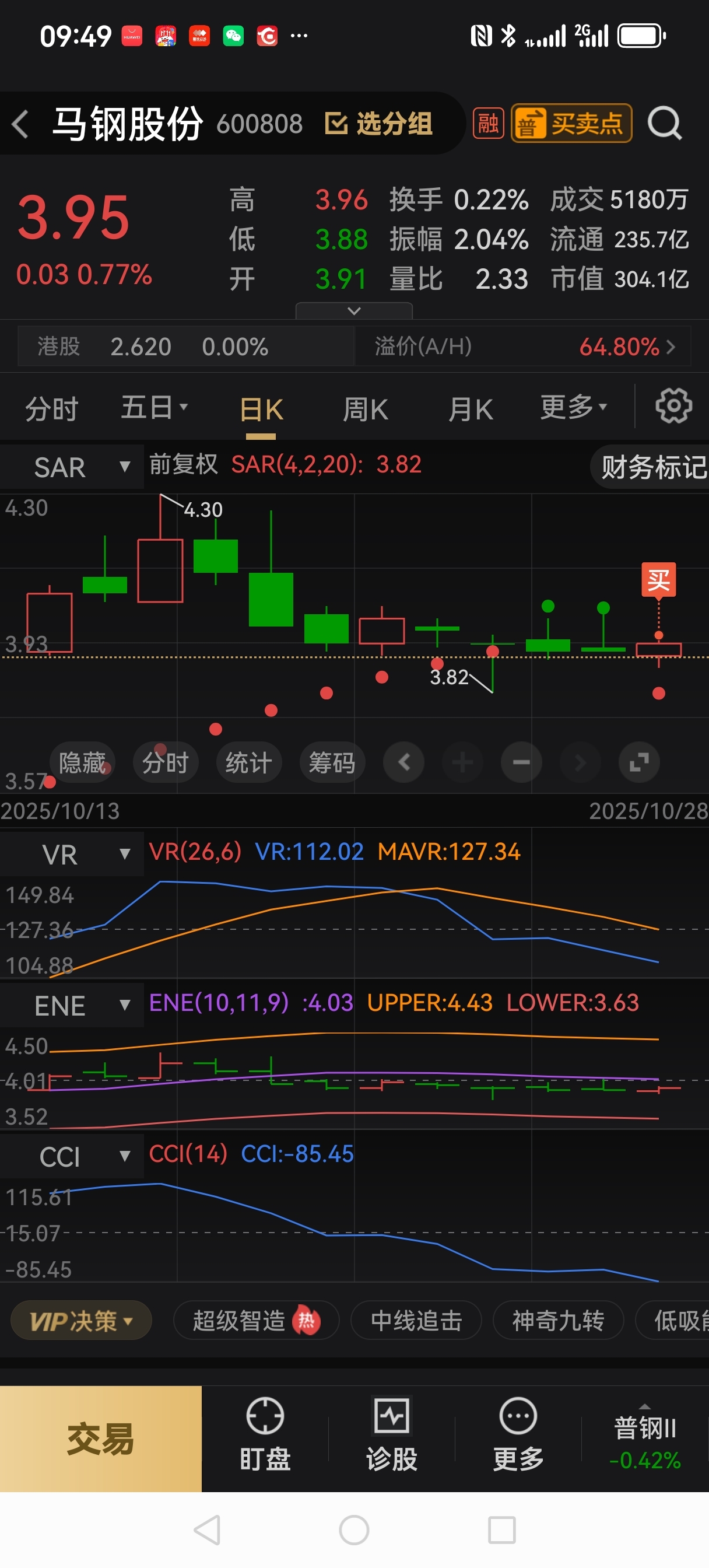 马钢股份,10月28号,已建仓3.89。