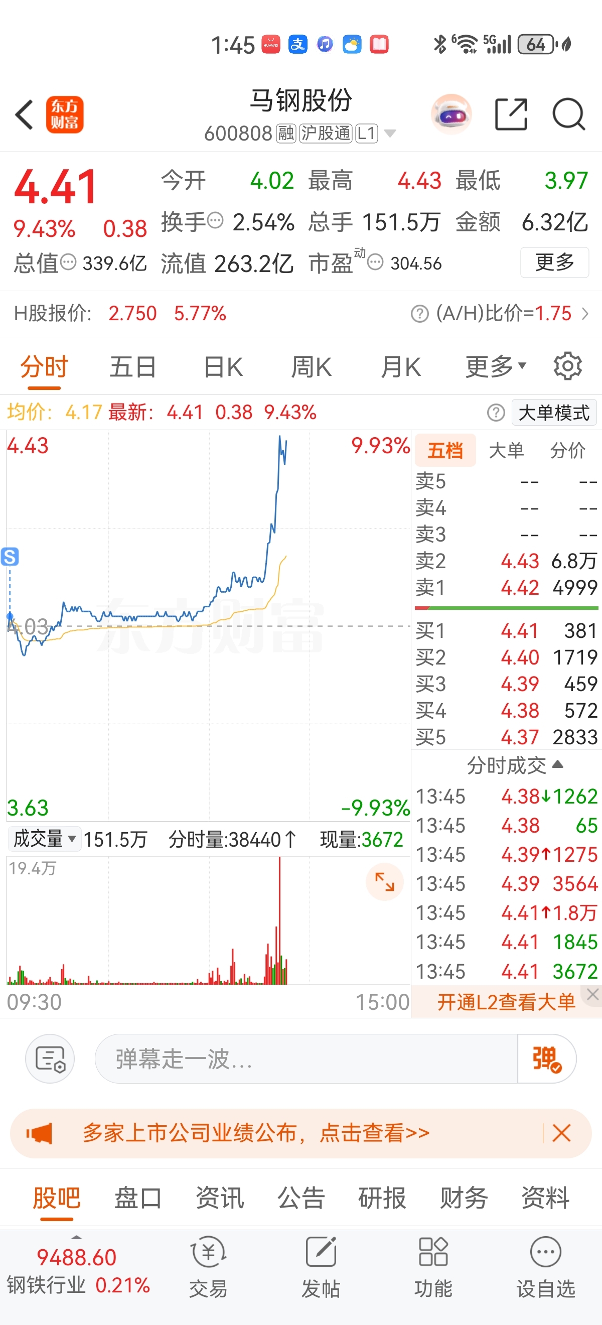 $马钢股份(SH600808)$ 我错了