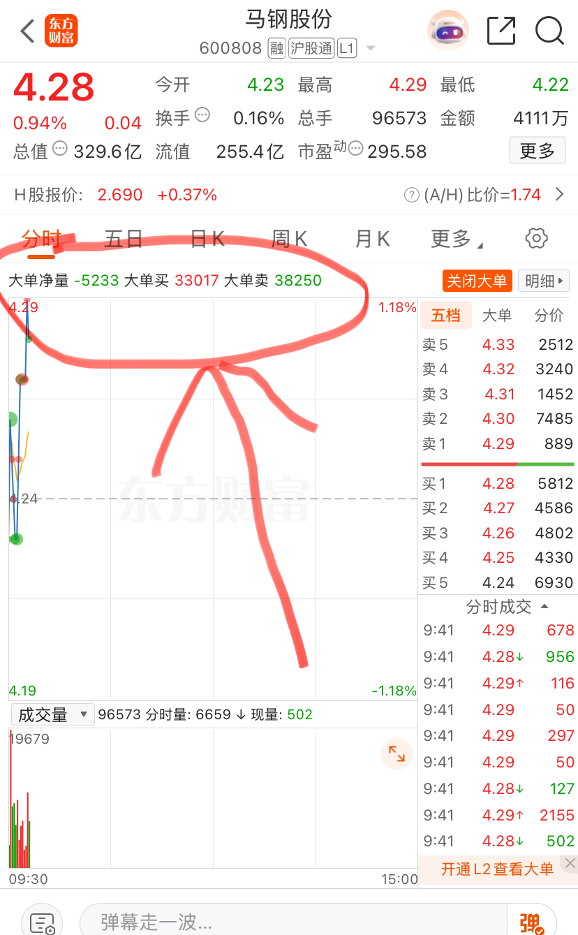 $马钢股份(SH600808)$ 抛压依然很重!拉升艰难!