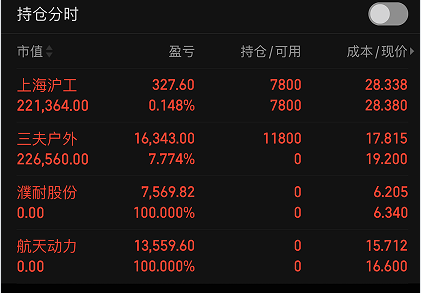 三夫户外:工昨天制定的计划是三个点以内集合竞价上,集合竞价高开近5个点没有成功,下午回落到三个点以内,但没有回补下方缺口,两点钟后有紫金开始承接,在两个点的时候入场了。