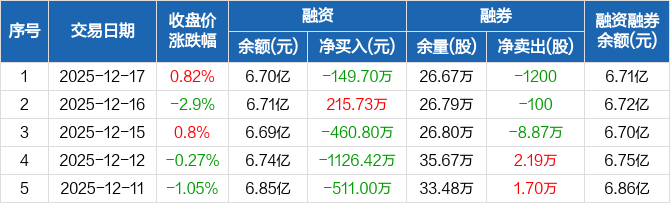 马钢股份:融资净偿还149.7万元,融资余额6.7亿元(12-17)