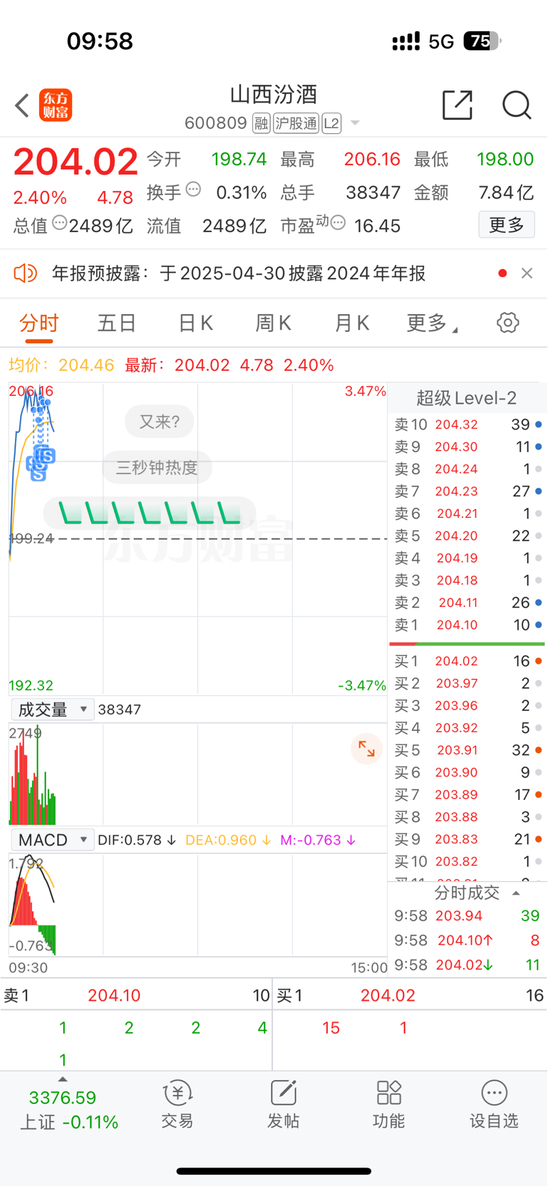 $山西汾酒(SH600809)$ 我满仓,我先撤一部分了兄弟们,祝下午涨停发财。