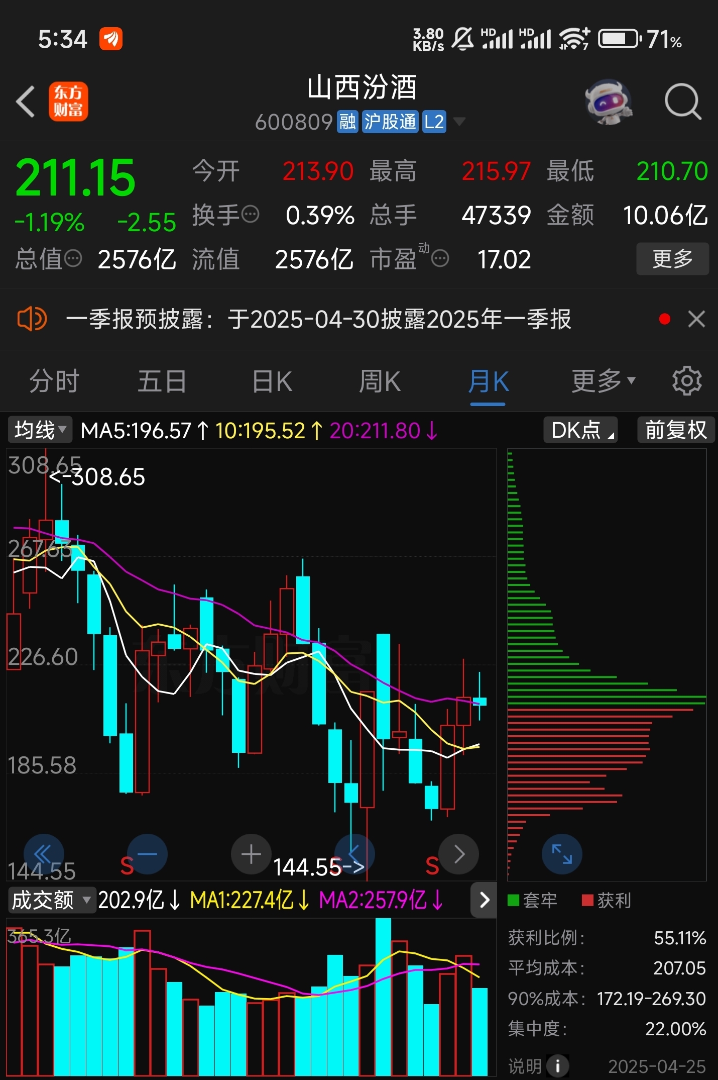 $山西汾酒(SH600809)$ 自己看月线吧,月线才是大趋势,肯定不会偏离的,到150也就2-3根的距离了。并且加上日线横久必跌的道理,后面肯定看空的。