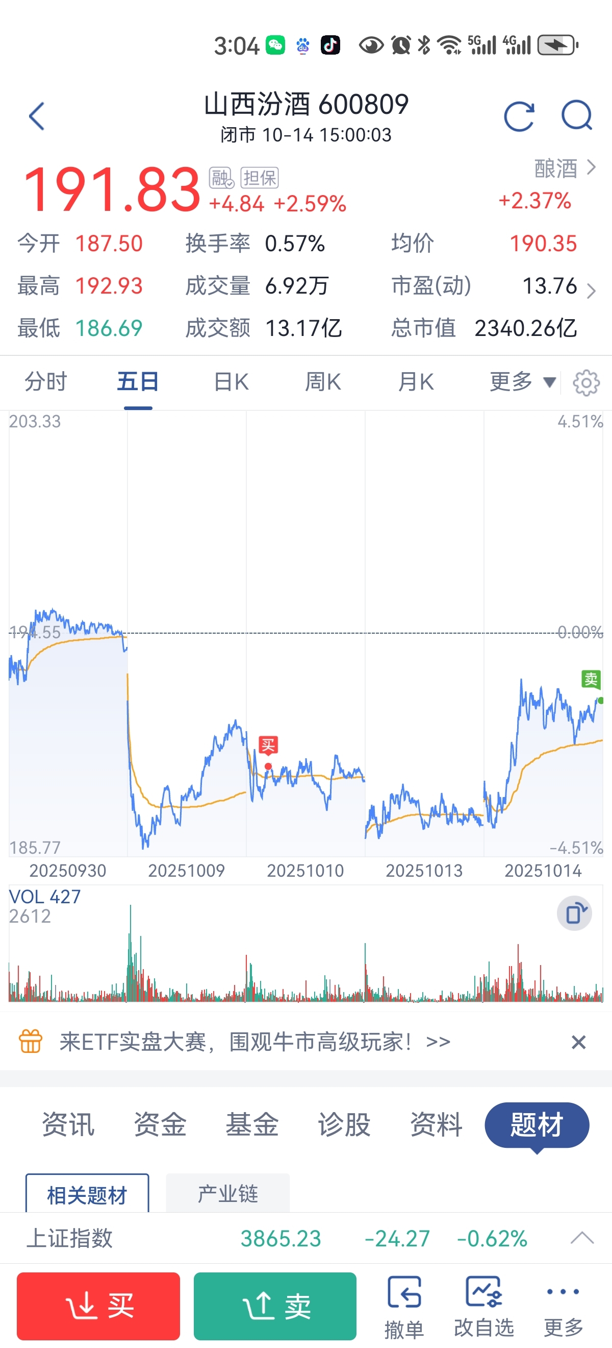 $山西汾酒(SH600809)$ 少赚点也是赚,落袋为安