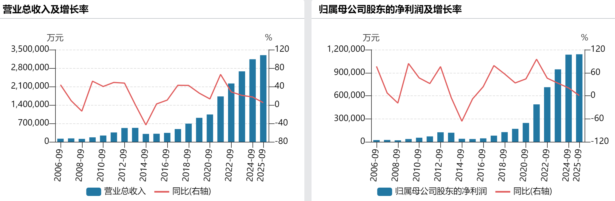 其中,第三季度实现营业收入89.60亿元,同比增长4.05%;归母净利润为28.99亿元,同比下降1.38%。