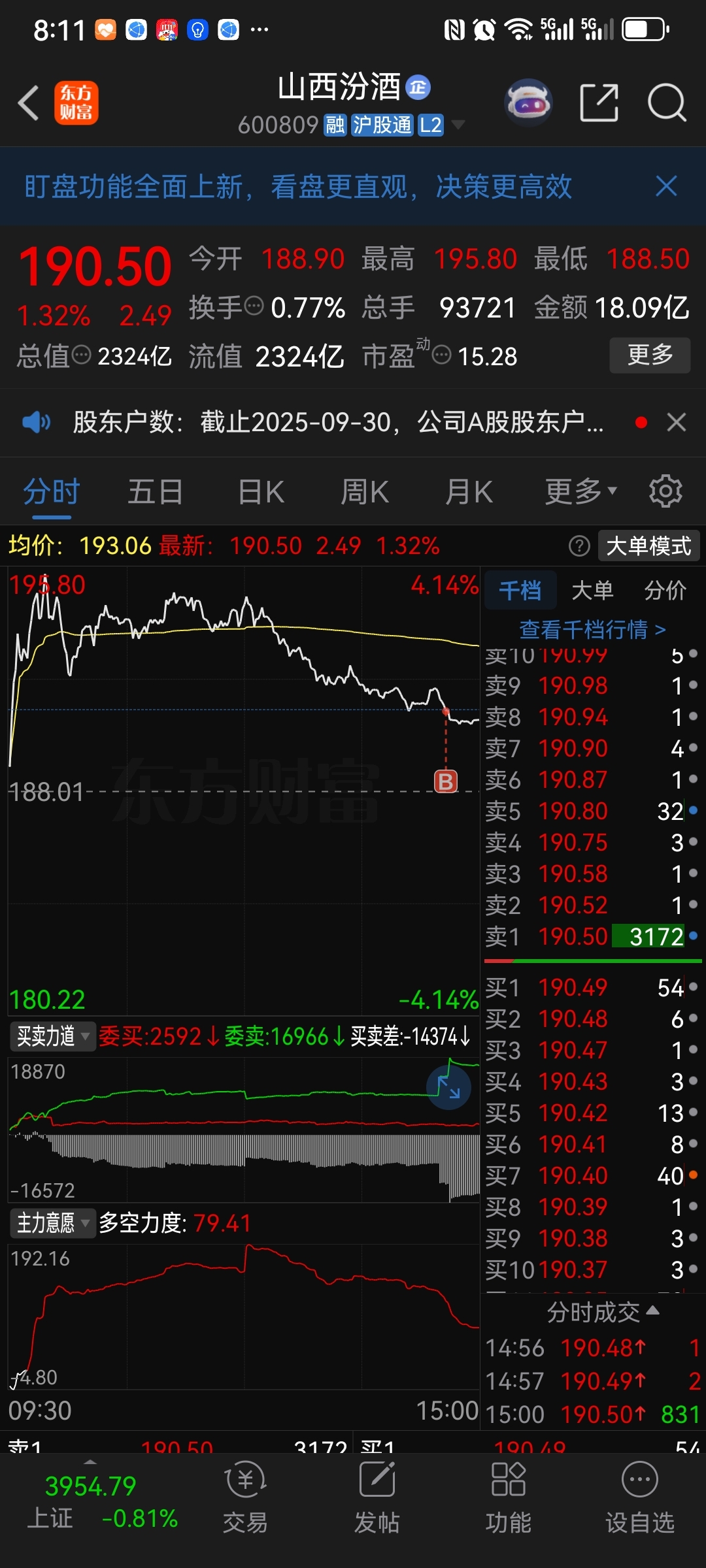 $山西汾酒(SH600809)$ 今天买了,在白酒类股票近几年都是战绩盈利。