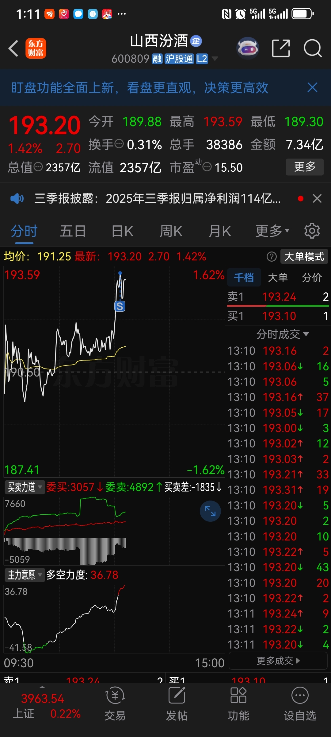 $山西汾酒(SH600809)$ 赚8千跑了!