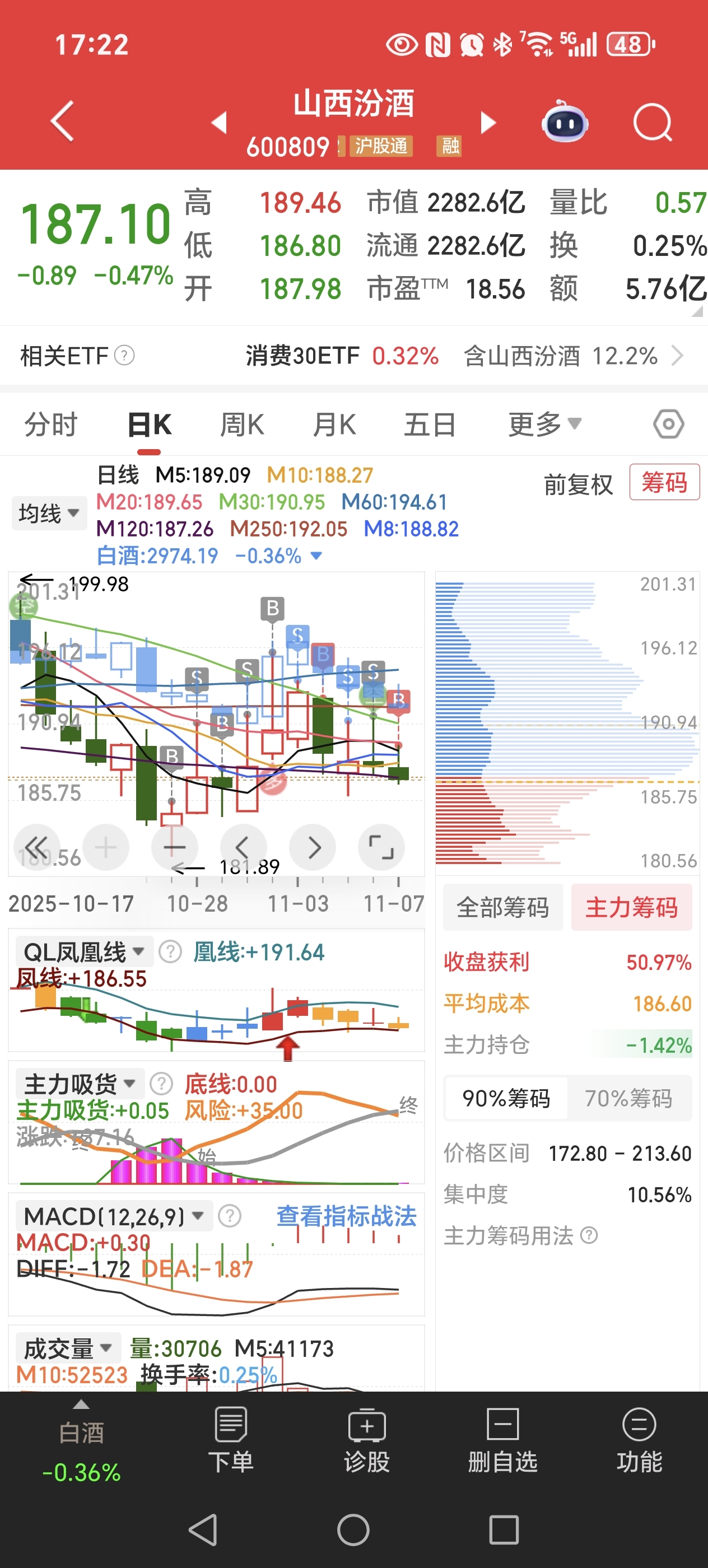$山西汾酒(SH600809)$ 昨天接近191清了,今天187接回来一半,日线三角形整理末端。缩量回调了几天,下周应该会选择方向了,我买了肯定是偏看多一些,仓位低简单布局点,白水真熬人