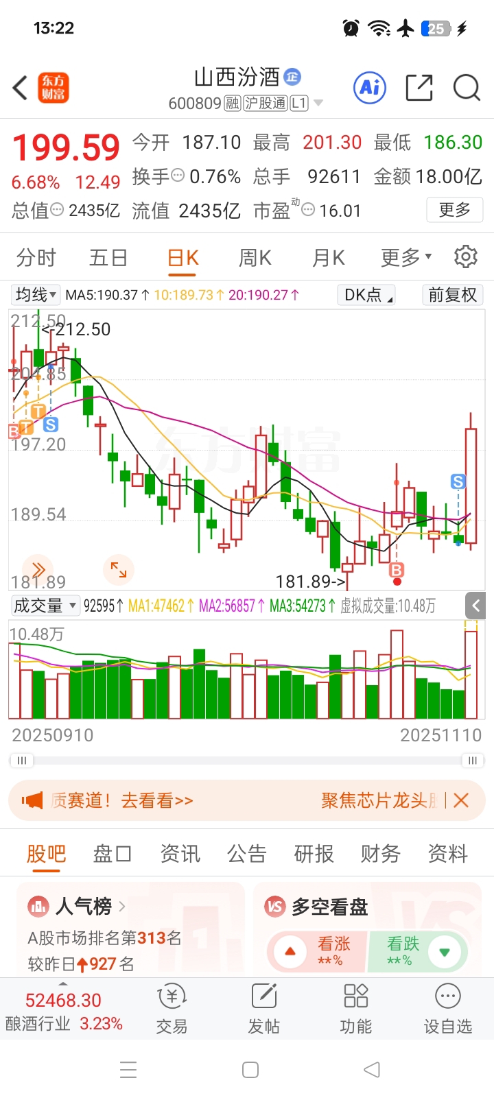 $山西汾酒(SH600809)$ 一觉醒来,天塌了,我的妈呀,大腿都被自己打五个手指头印子