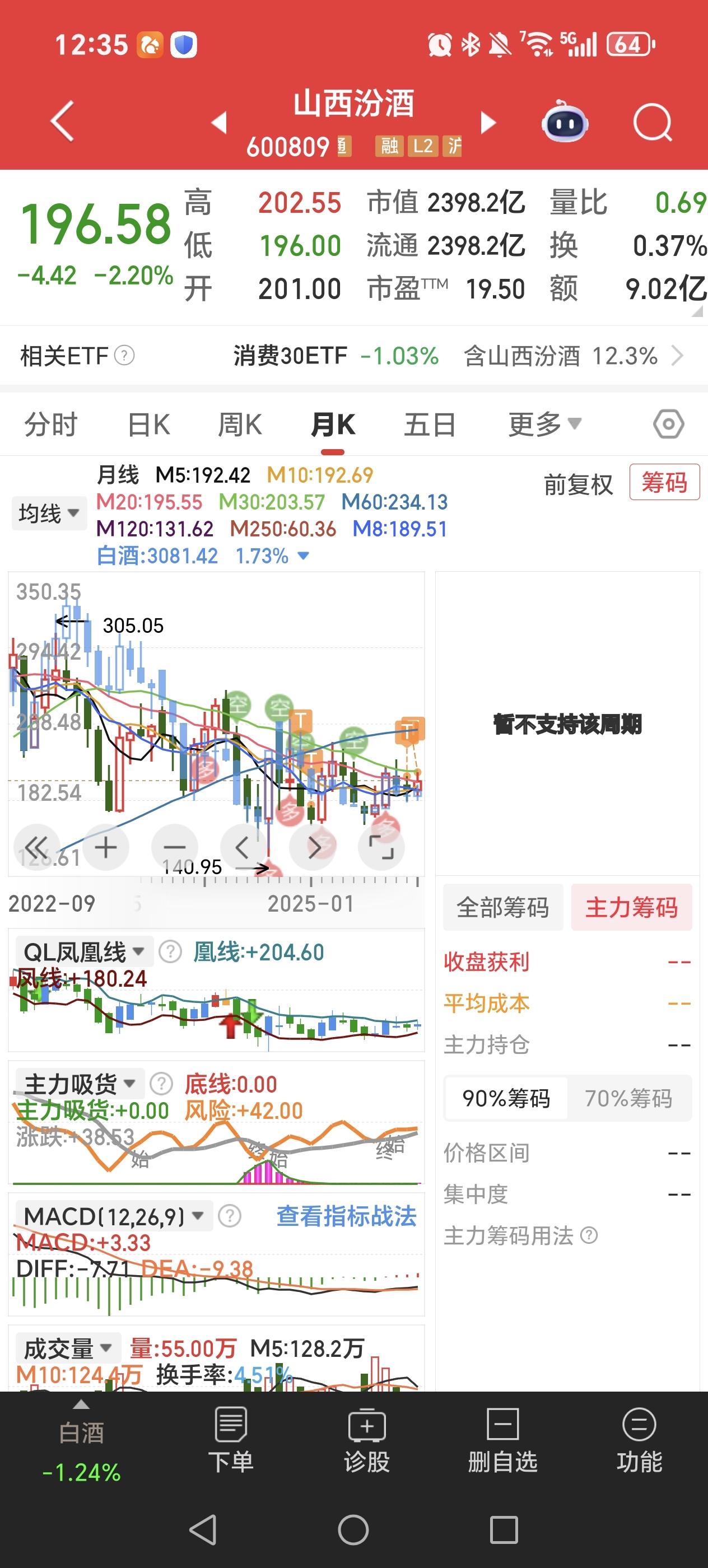 $山西汾酒(SH600809)$ 周五的大宗很多啊,好像减持就剩小几百万股了?谁给算算。月线走势也是三角形调整末端,下周初如果能给到192-194位置考虑加点仓位
