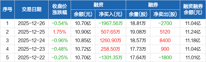 山西汾酒:融资净偿还1967.56万元,融资余额10.7亿元(12-26)