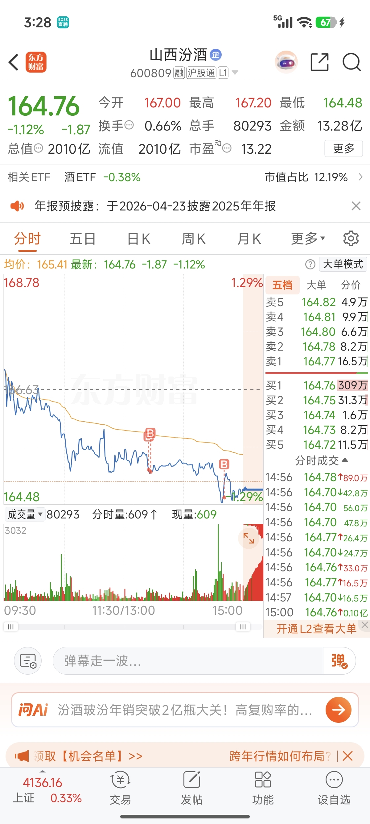 $山西汾酒(SH600809)$ 今日抄底