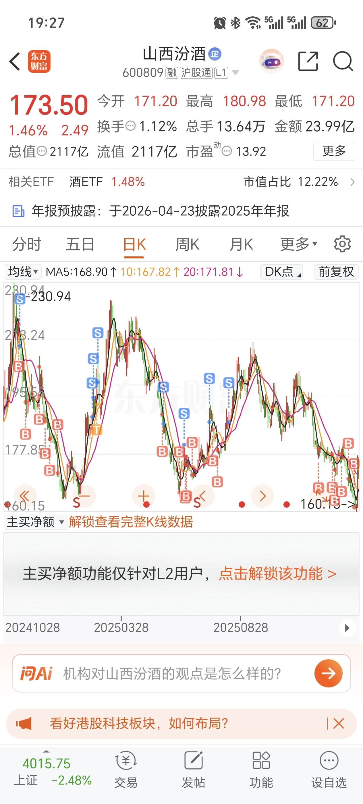 $山西汾酒(SH600809)$ 今天出了,希望给一个接回来的空间