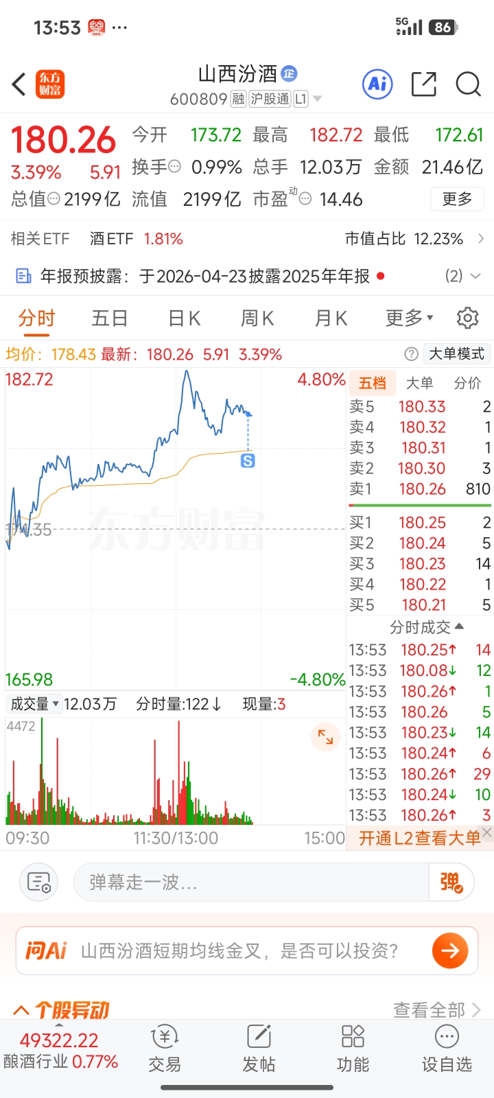 $山西汾酒(SH600809)$ 先走一步,兄弟们白酒我还有仓位